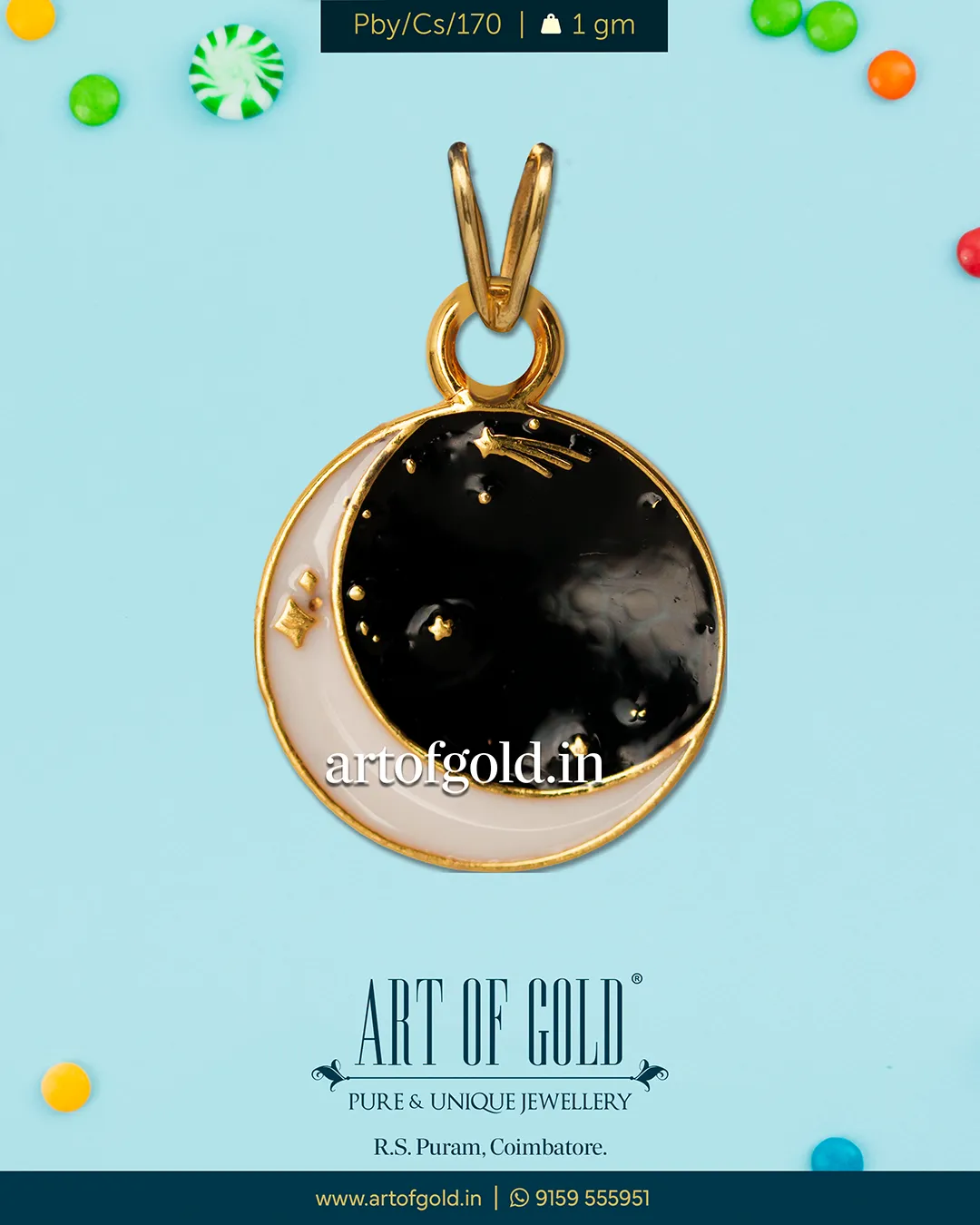 Gold baby pendant – with Moon & Stars design. Weighs just a gram!