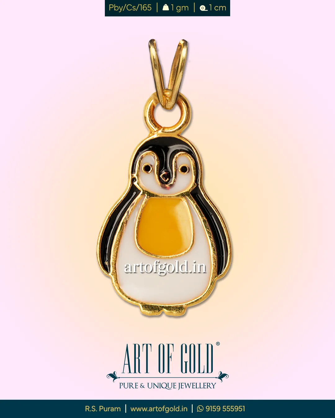 Cute Penguin pendant in gold for kids – from Art of Gold’s baby & kids pendants collection.